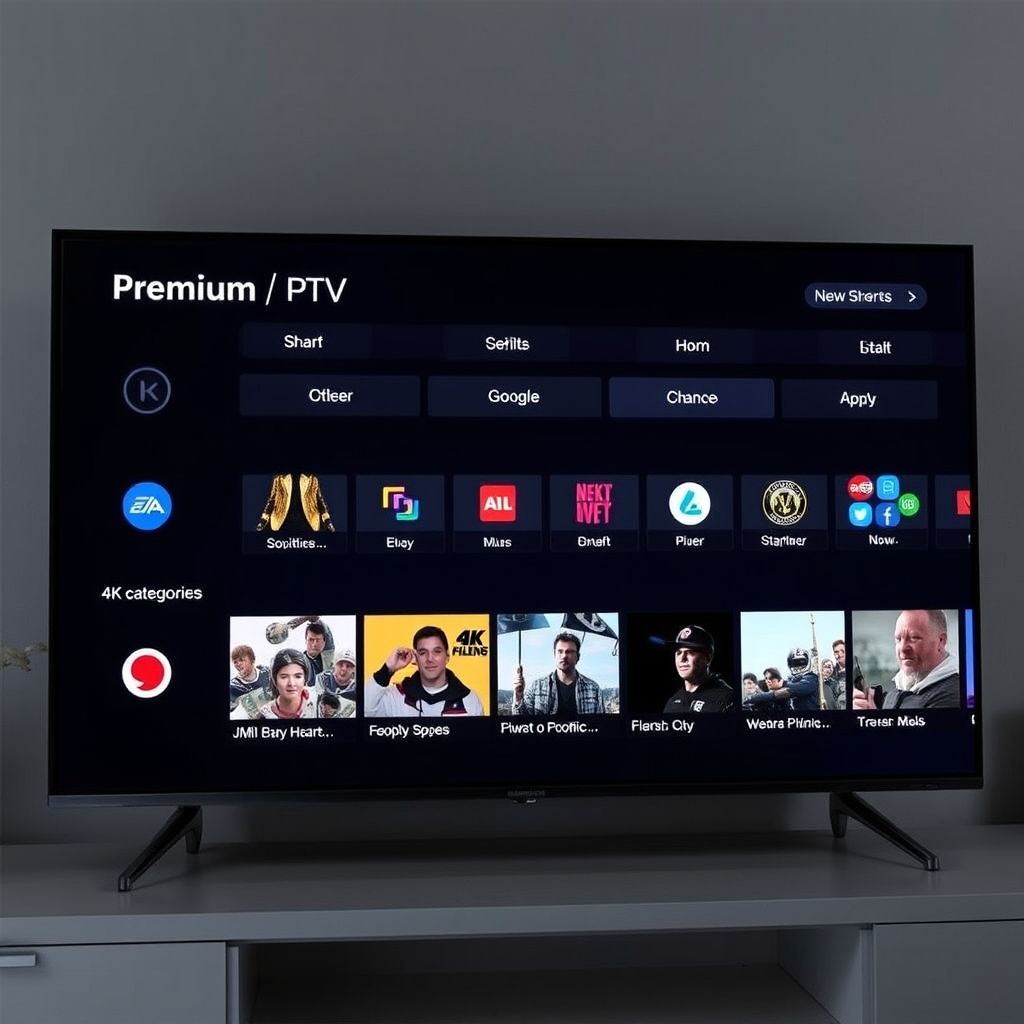 Interface IPTV 4K premium affichée sur l'écran d'un téléviseur connecté